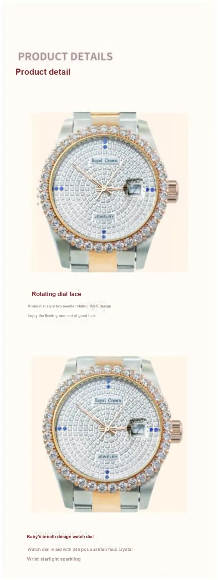 ROYAL CROWN RC Кварцевый механизм Часы Унисекс Серебристый циферблат RC3662L 1 мм