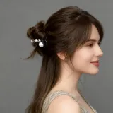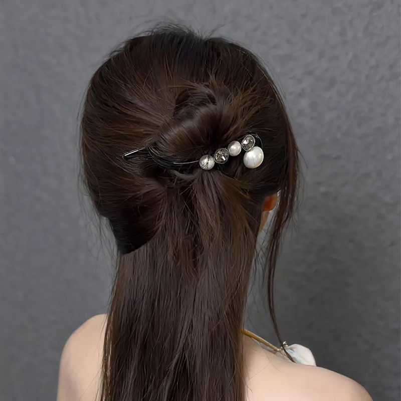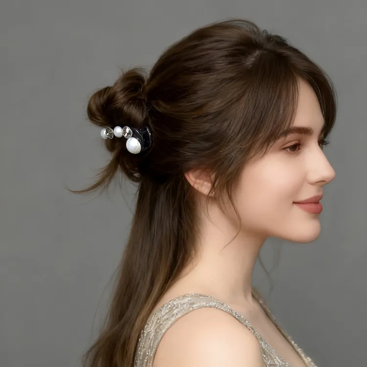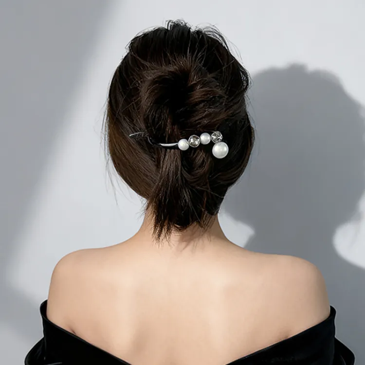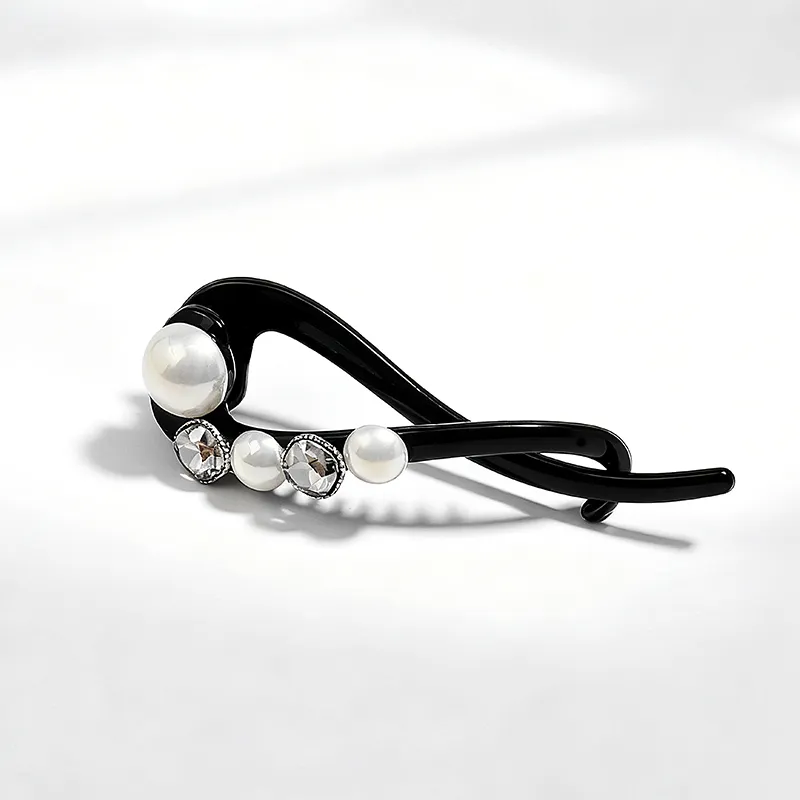 ROYALSASA Акрил Искусственный кристалл Искусственная жемчужина Банан Нижняя заколка Женские