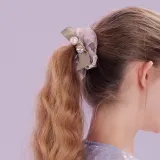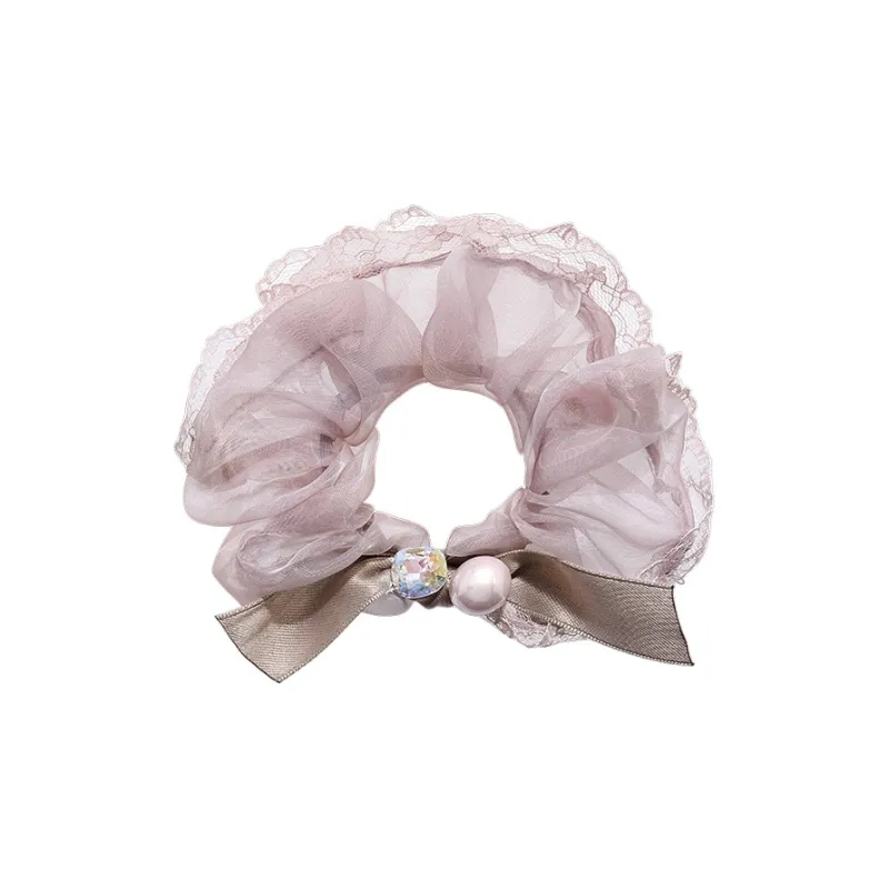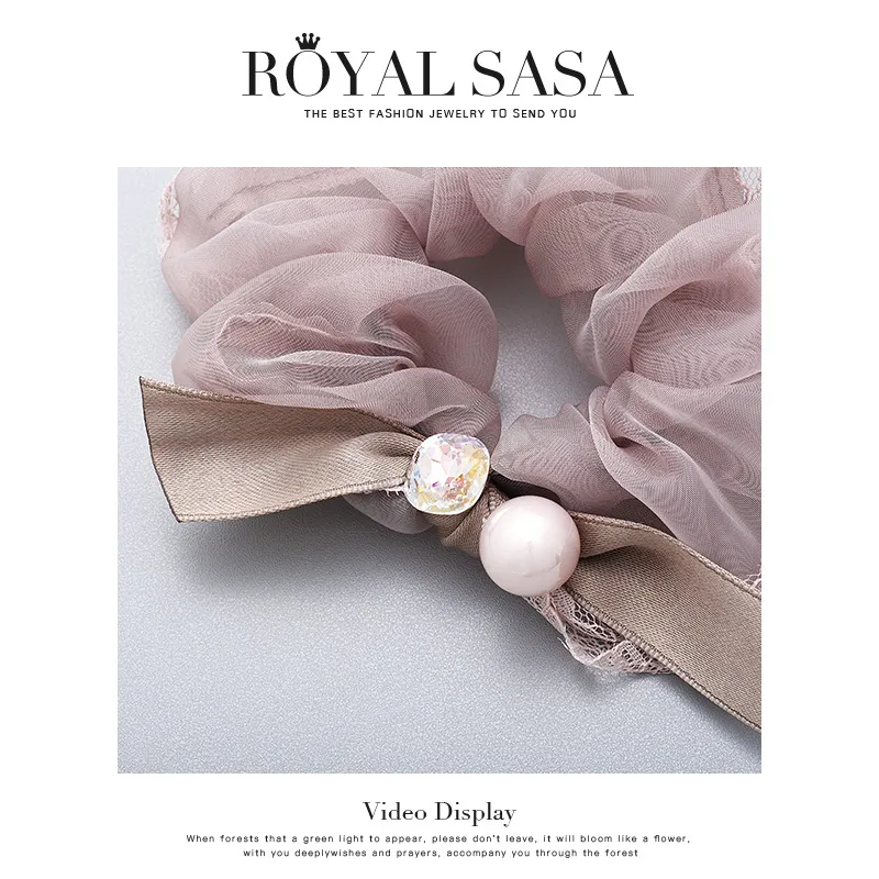 ROYALSASA Шелковый шифон Искусственная жемчужина Искусственный кристалл Резинка для волос Женская