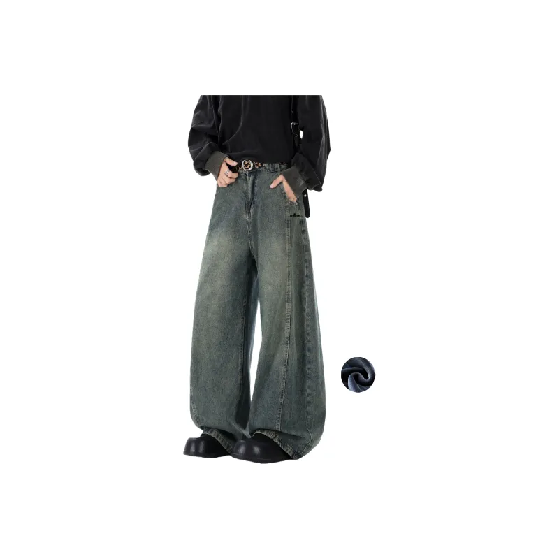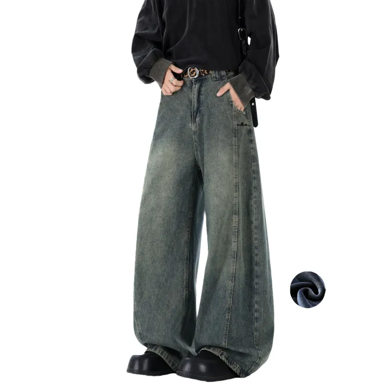 RTVH Ностальгический синий с флисовой подкладкой унисекс джинсы