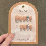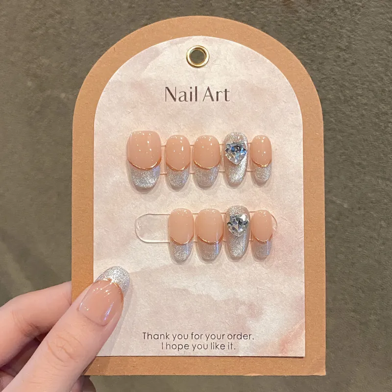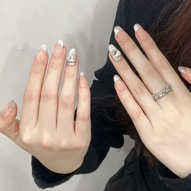 Rui Jin Осветляющий Атмосферный Кокетливый стиль Фея False Nail MID Длина (размер в длину) Серебряный Смужка Однотонный 22 мм