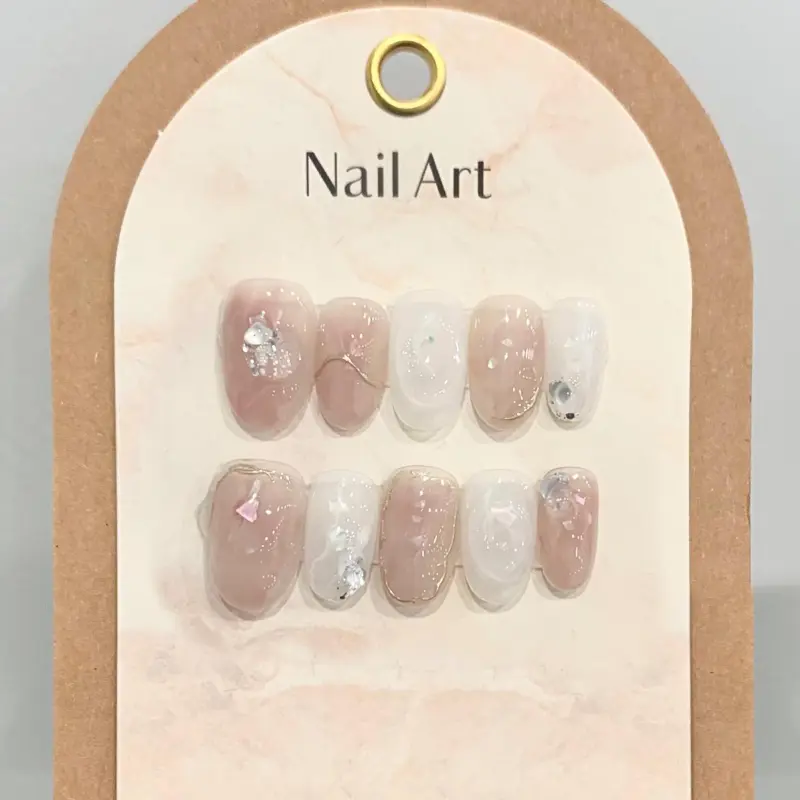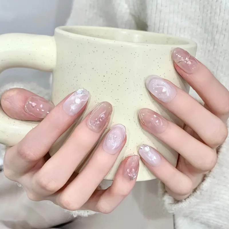 Rui Jin Осветляющий Премиум Розовый Смешанный False Nail Короткий Светлый Однотонный Coquette 20 мм