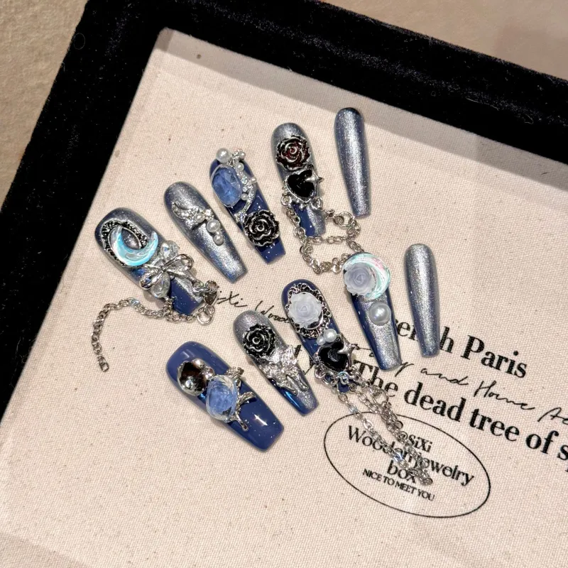 RUIJIN Осветляющий Handcrafted False Nail Синий Luxury Style Розовый Niche Style Hot Girl Съемный