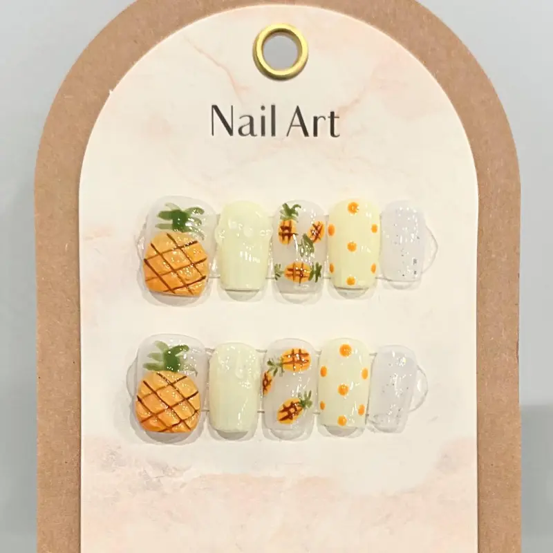 RUIJIN Осветляющий Премиум Летний Фрукт Ананас Дизайн Съемный Handcrafted False Nail Укороченный Короткий LADDER Свет