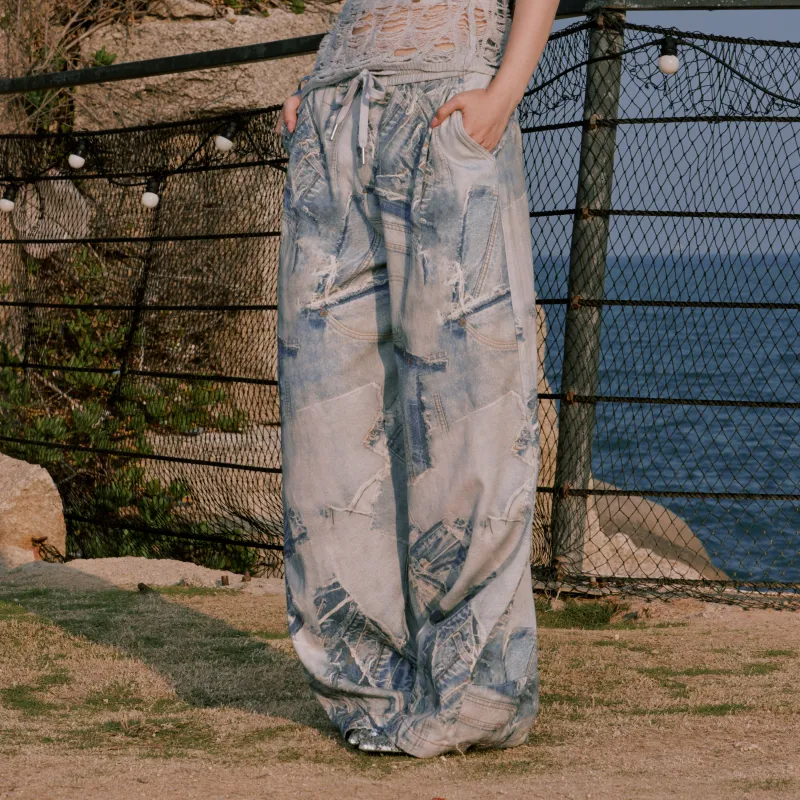 RUNTOTHEFUTURE Повседневные брюки Женские Джинсовая ткань Vintage
