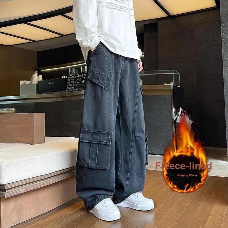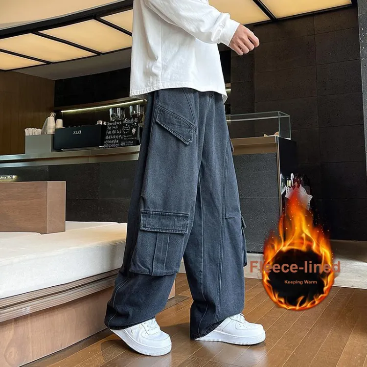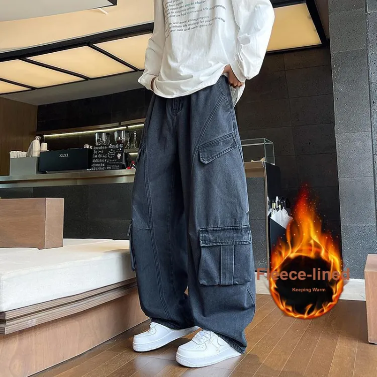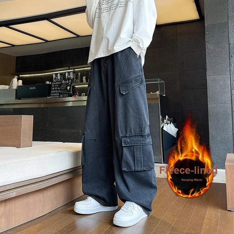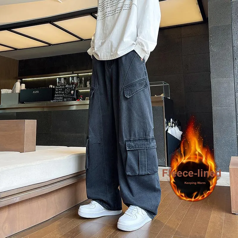 RUXU Черные джинсы с флисовой подкладкой для мужчин