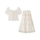 RUXU Абрикос, с LINING, Эластичные Bands AT Обхват талии Спина Женские Комплекты с юбкой