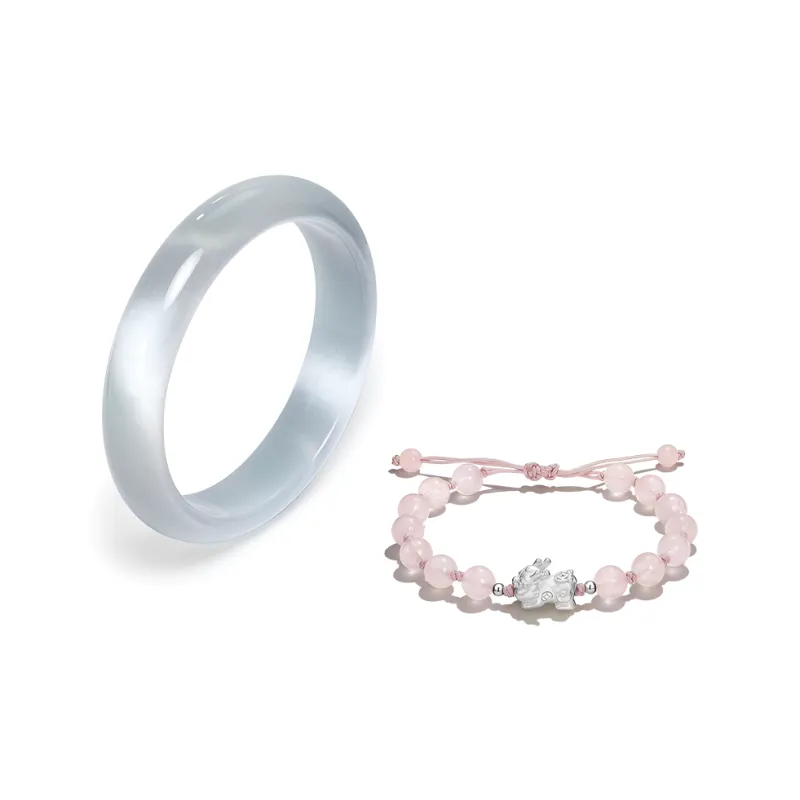 Браслет из розового нефрита с китайскими благоприятными животными + браслет из ледяного синего нефрита, размер 60#