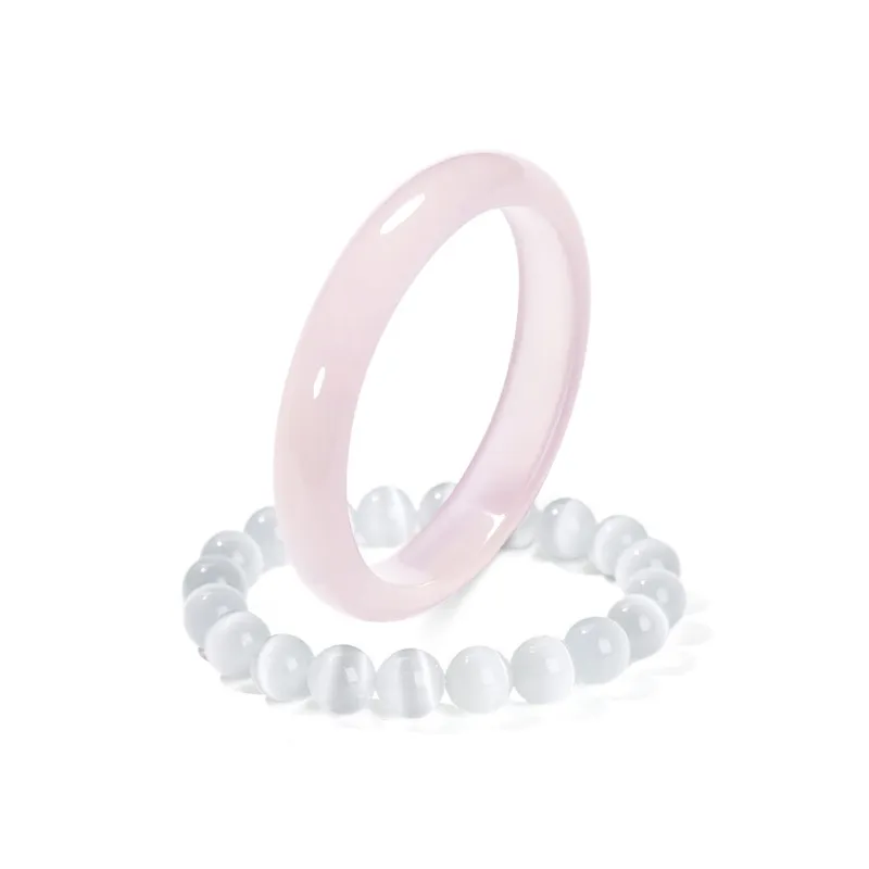 Белый лунный свет Нефритовая бусина Браслет с бусинами + Лотосово-розовый Нефритовый Браслет 60#