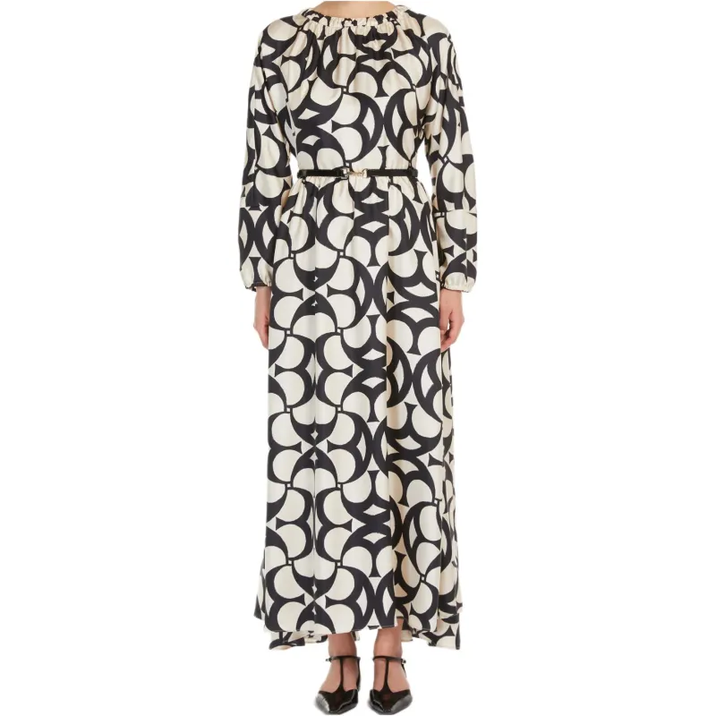 MaxMara Длинное платье с длинными рукавами женское черное и белое
