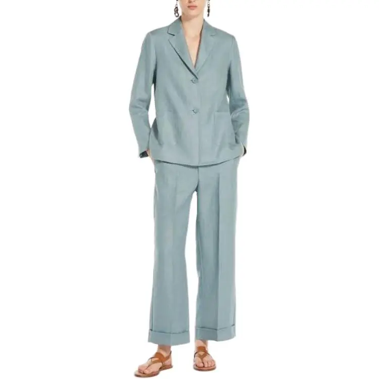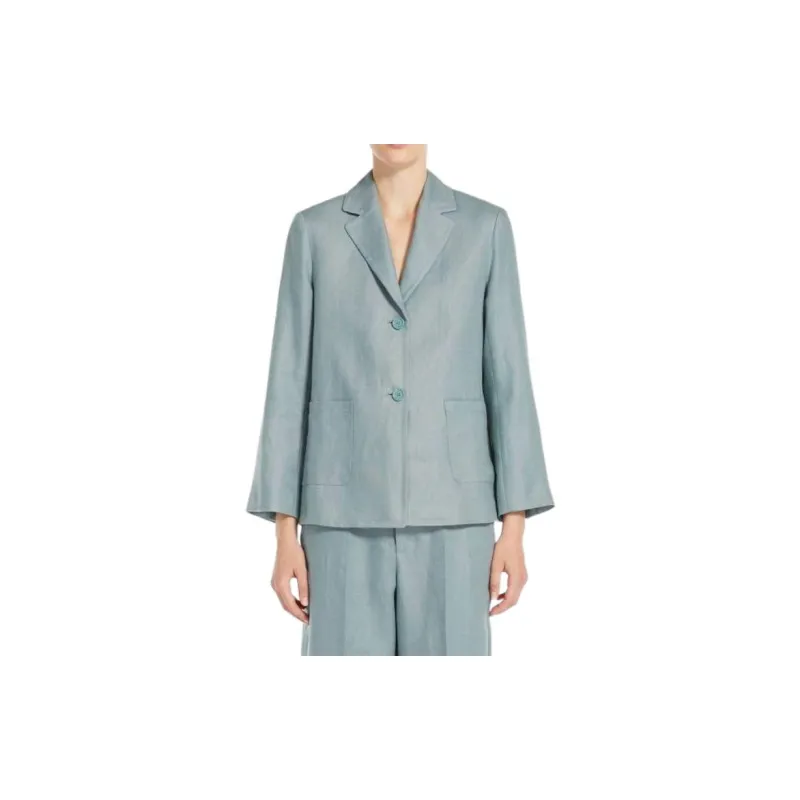 'S MAX MARA Socrates Коллекция Одинальная льняная куртка из льна Куртки и пальто Женская Светло-синяя