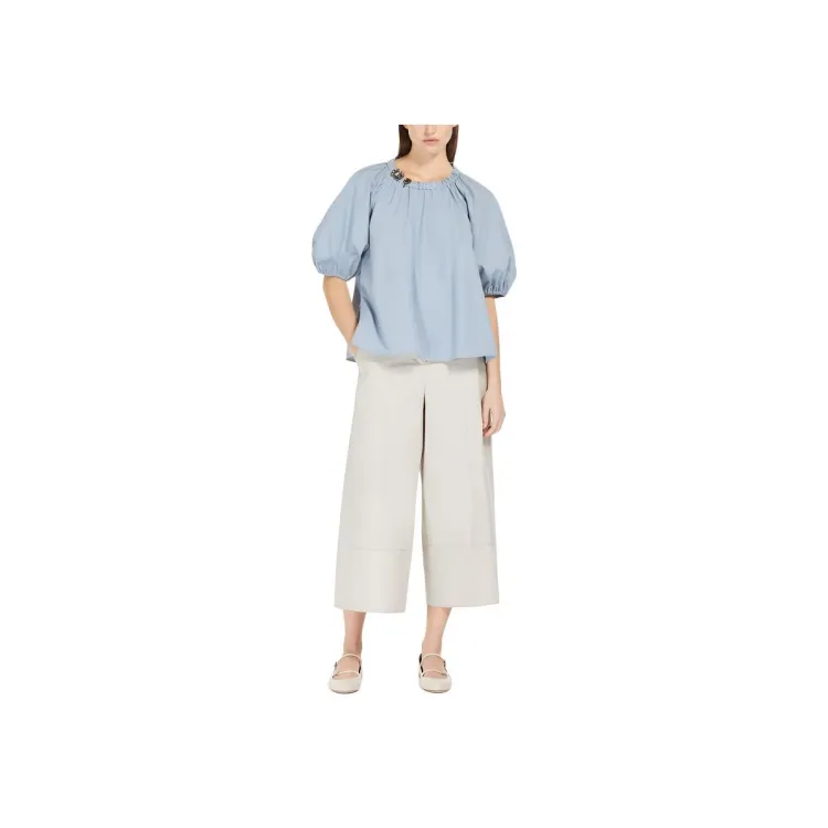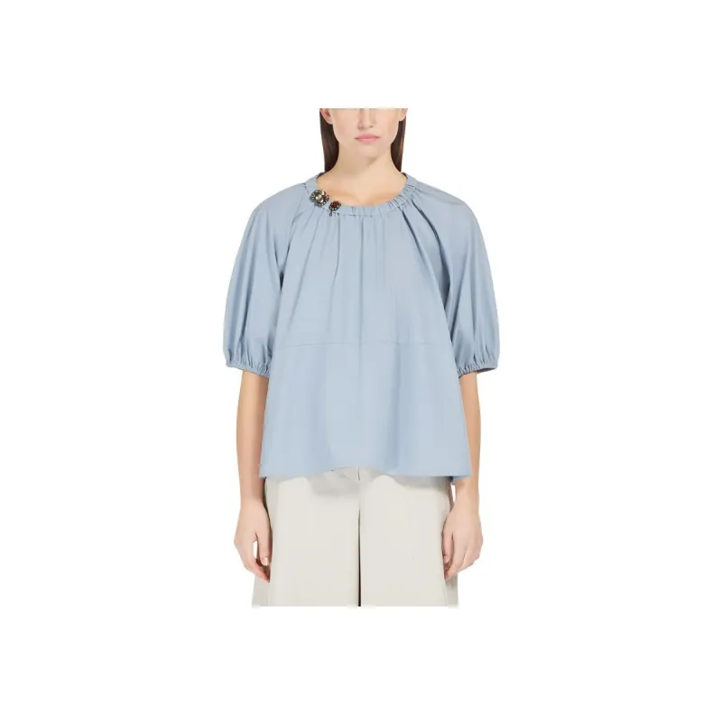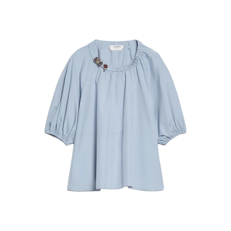 'S MAX MARA TATIANA Коллекция Хлопковый поплин Блоуза Рубашка Женская Синяя