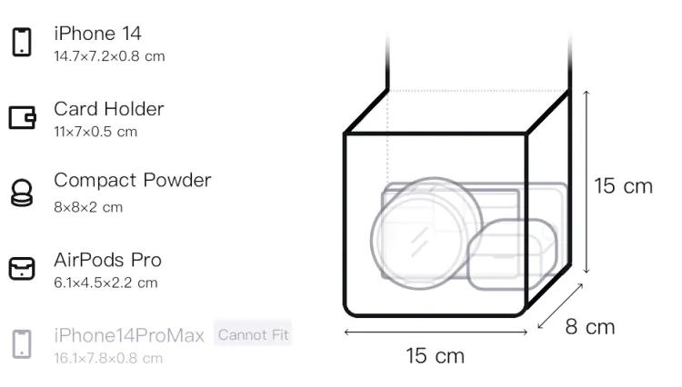 Длина (размер в длину): 20/15 см, Ширина: 8 см, Длина корпуса: 15 см