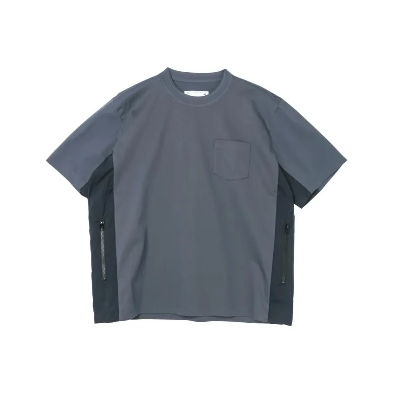 Sacai совместный бренд SS25 Синий Серый Мужская T-рубашка