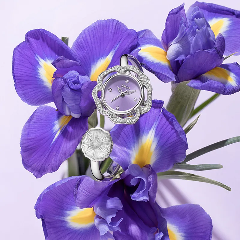 SAGA Camellia Кварцевый механизм Часы Женские Жемчужная раковина Циферблат