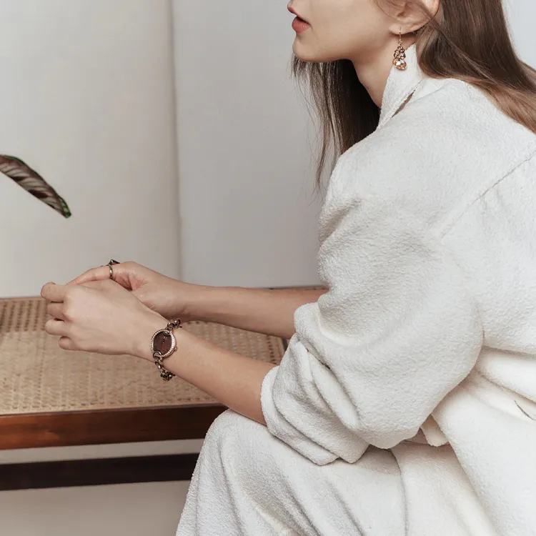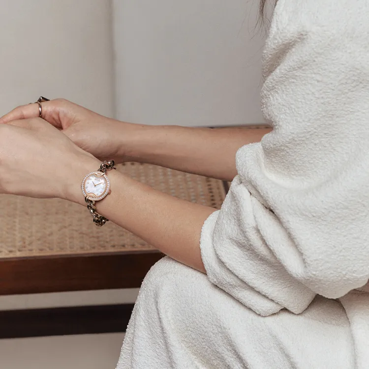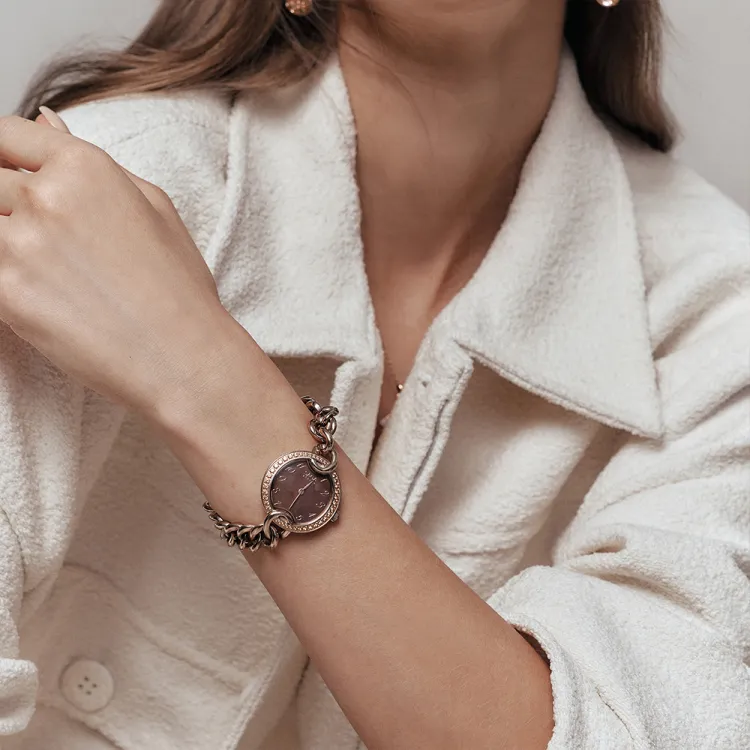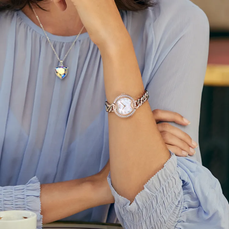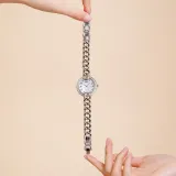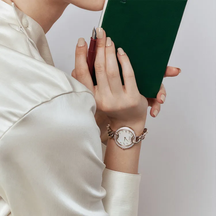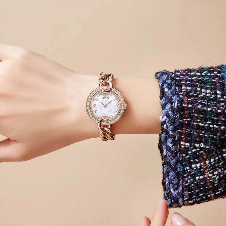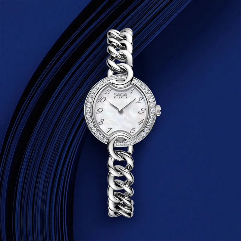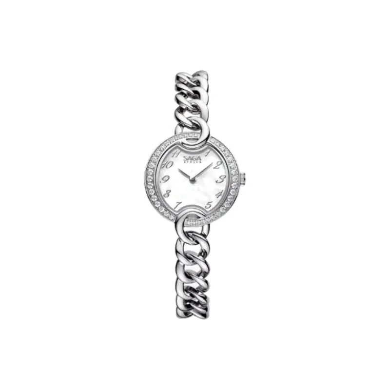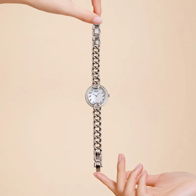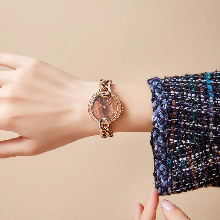 SAGA Кожа Цепь Маленький Золотой Цепь Австрийский Кристалл Кварцевый Механизм Ремешок из Нержавеющей Стали