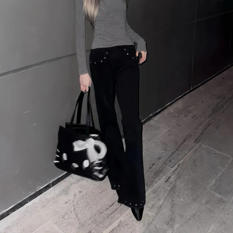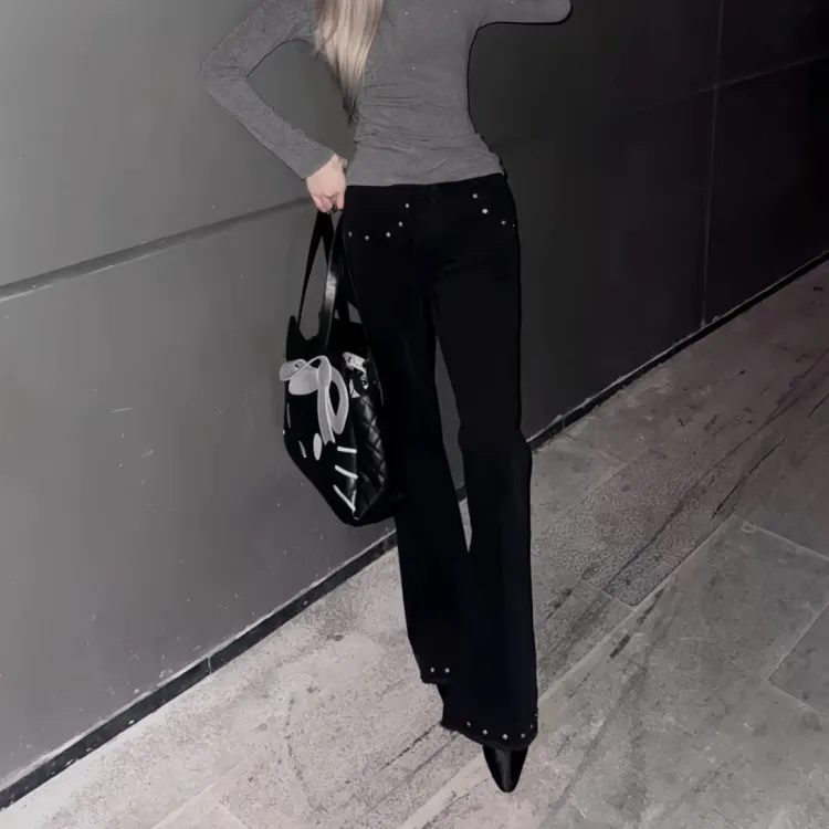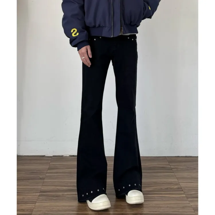 Цвет:Черный, расклешенный, с заклепками, стиль позиционирования