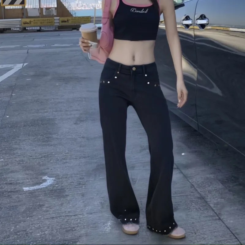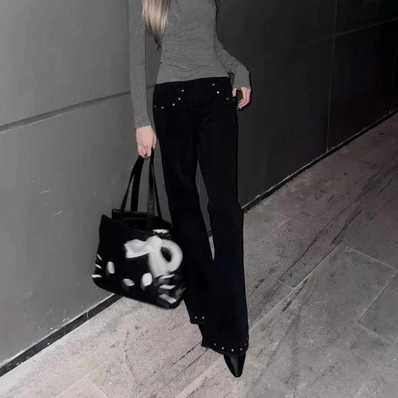 SAGP Черные Расклешенные Джинсы в стиле Rivet, унисекс