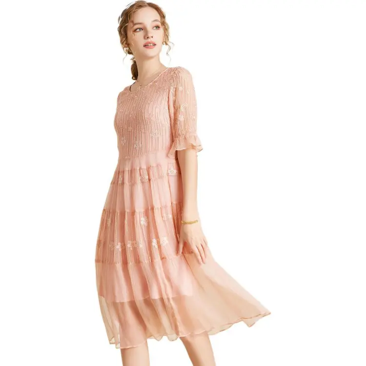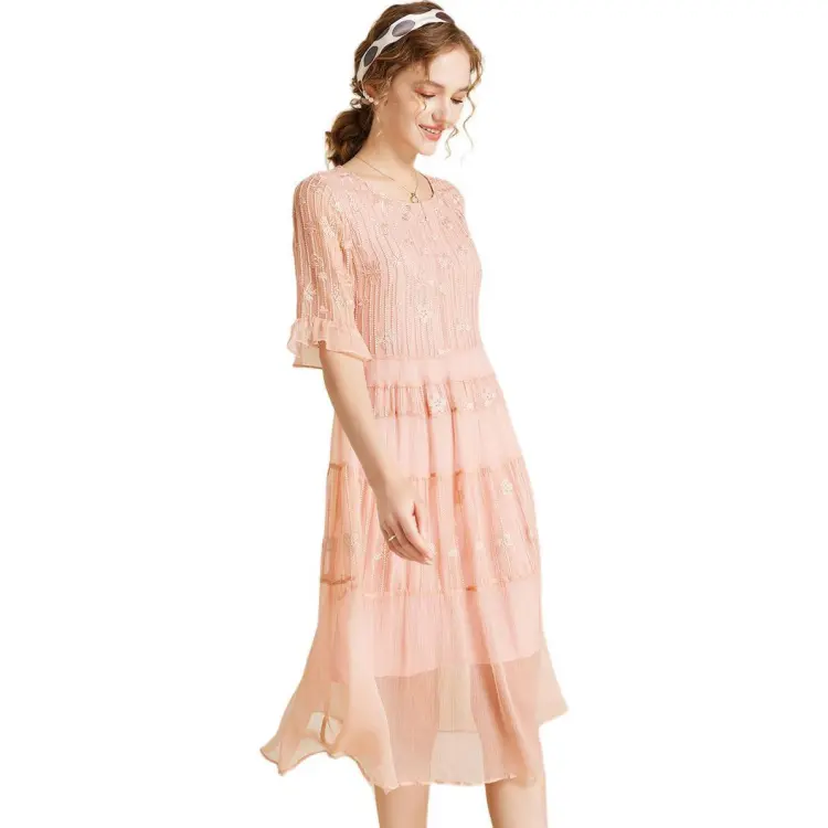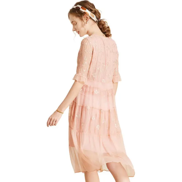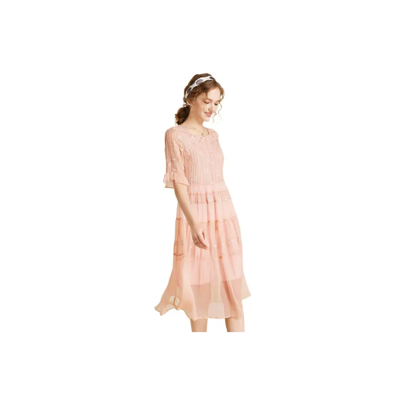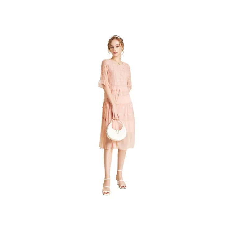 Sai Rabbit Короткий рукав Платье Женское Вишневый цветок Розовый