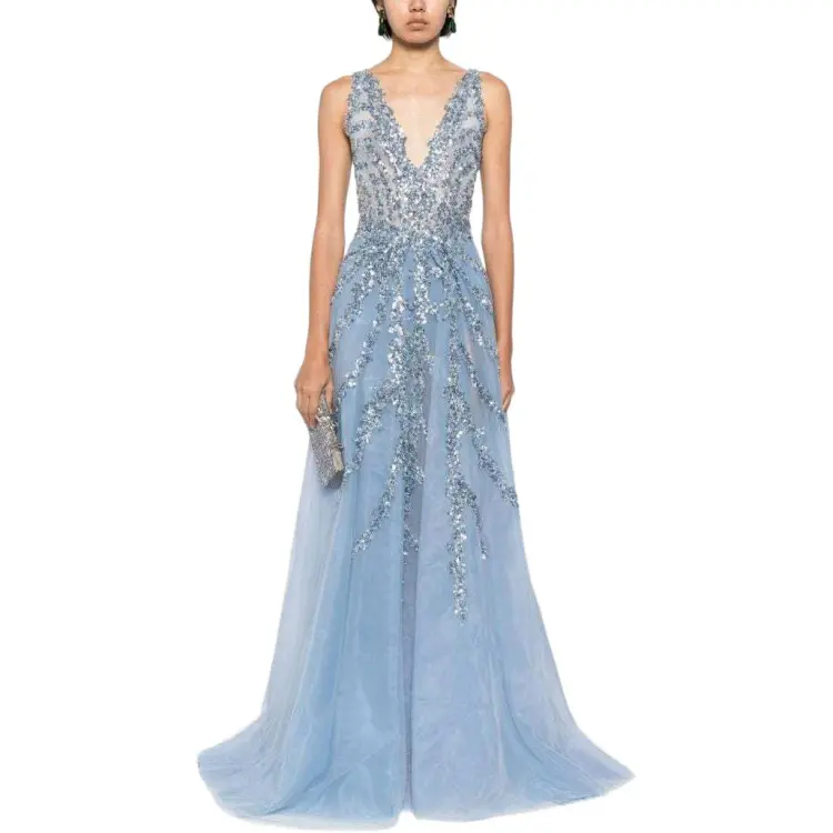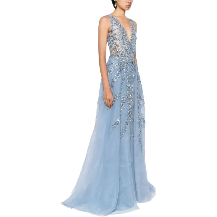Saiid Kobeisy SS24 Без рукавов Платье Женское Светло-Синий