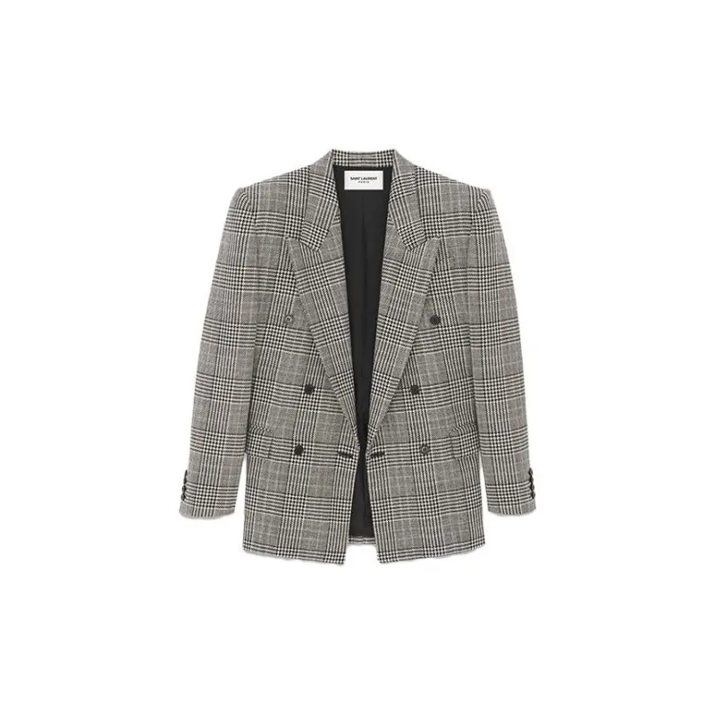 SAINT LAURENT Бизнес-костюм пальто женское черное серое