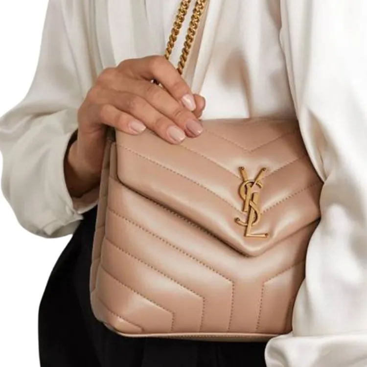 SAINT LAURENT Коровья кожа Конверт Сумка Плечевая сумка Маленькая Женская Темно-бежевая