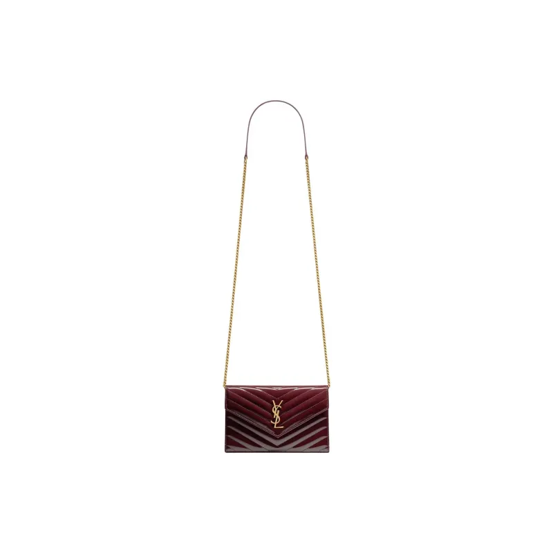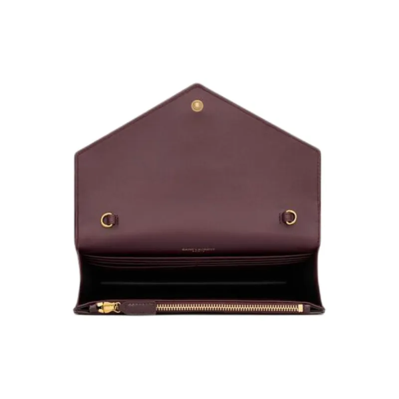 SAINT LAURENT CASSANDRA Телячья кожа Конверт Сумка Кошелек Сумка через плечо Женская Темно-красная Вино