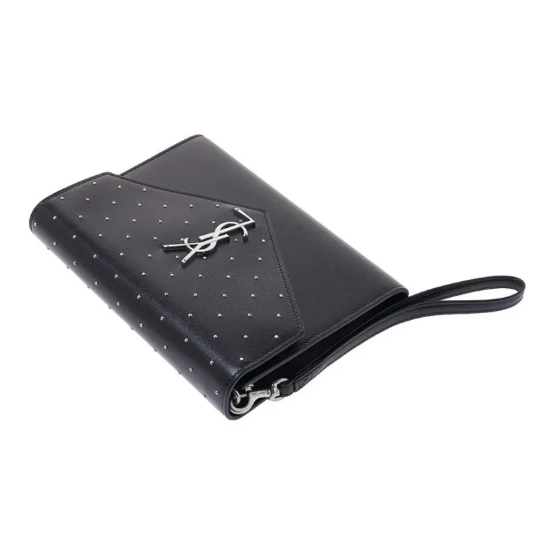 SAINT LAURENT Cassandre Телячья кожа Сумка на запястье Клатч Женский Черный