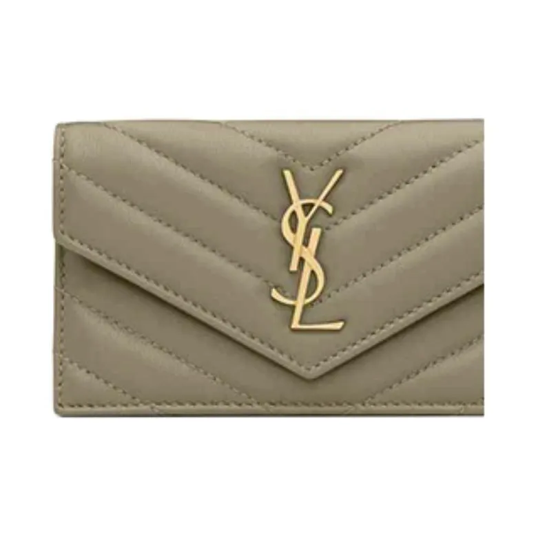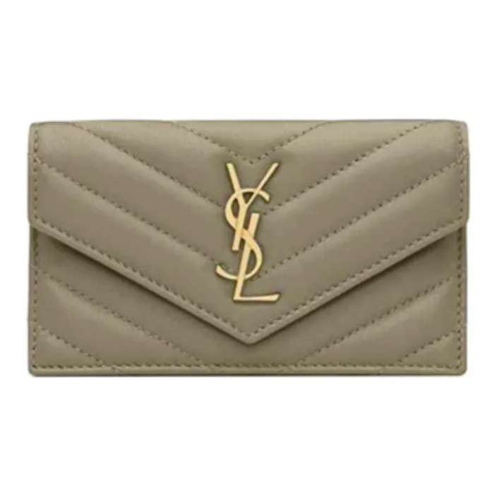 SAINT LAURENT Cassandre Овчина Картхолдер Женские Темно-зеленый мох
