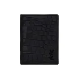 SAINT LAURENT Крокодиловый узор Тисненый Матовая кожа Держатель для карт Держатель для карт Мужской Черный