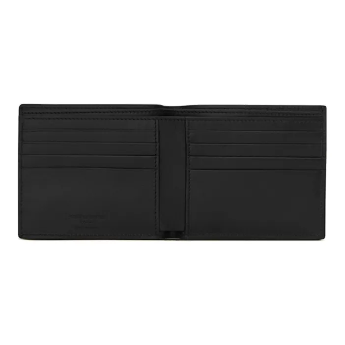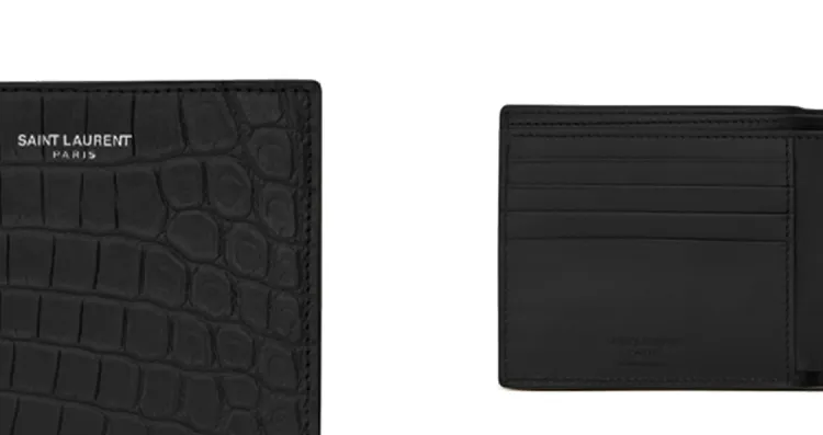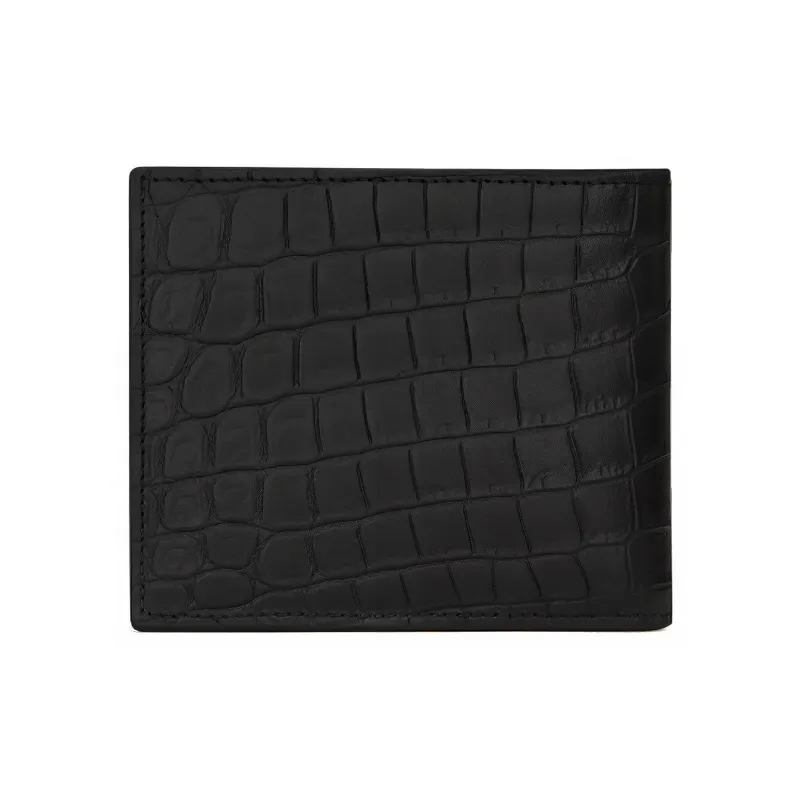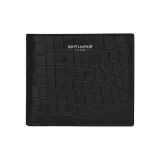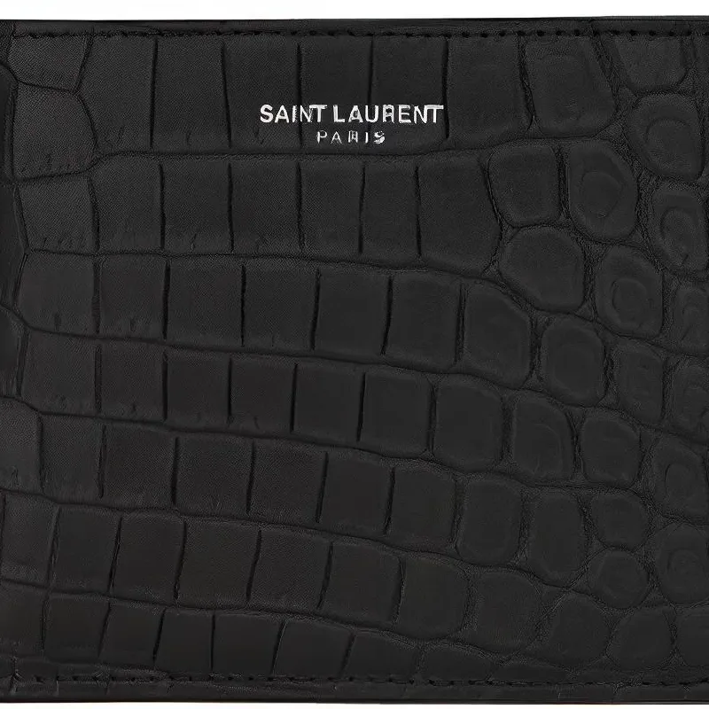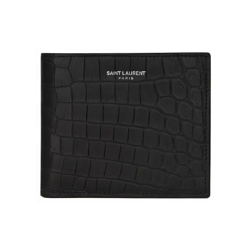 SAINT LAURENT YSL Крокодил Тисненая кожа Укороченный Двойной складной кошелек Мужской Черный