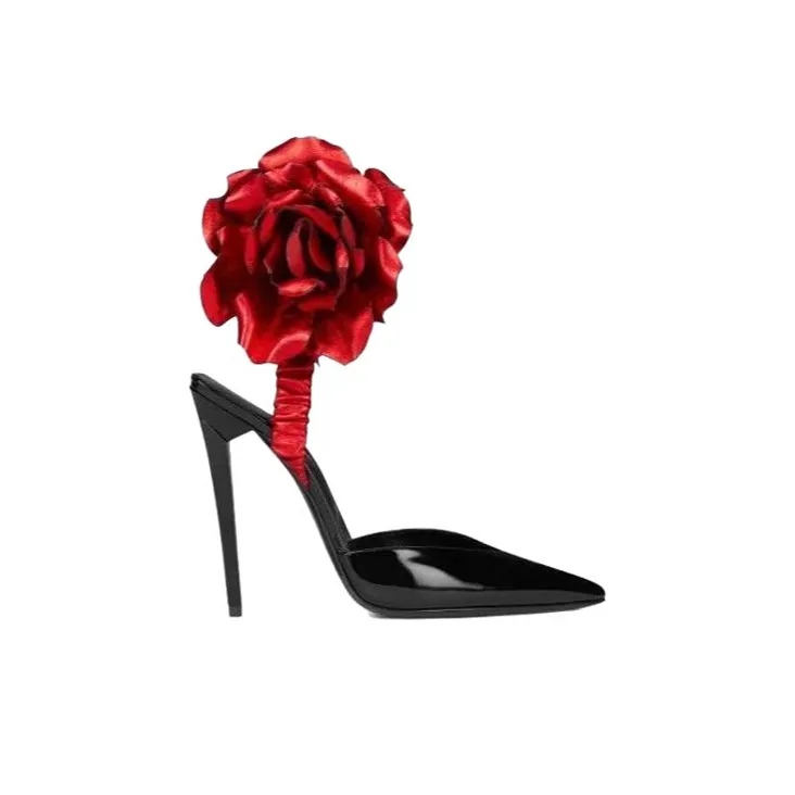 SAINT LAURENT Freja Узкий каблук Высокие каблуки Женские Черный Красный