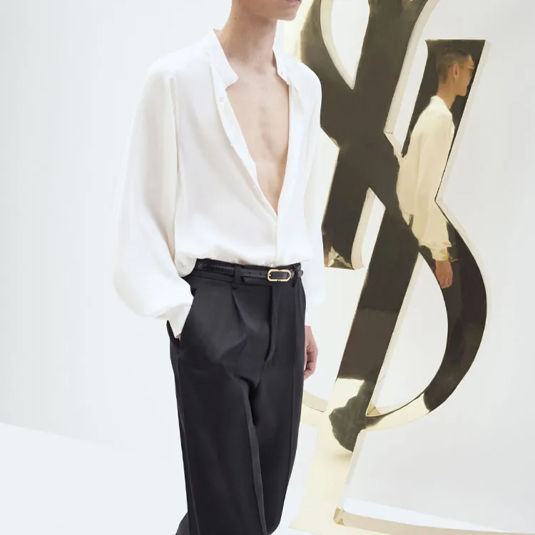 SAINT LAURENT FW22 Рубашка Мужская Серо-Белая