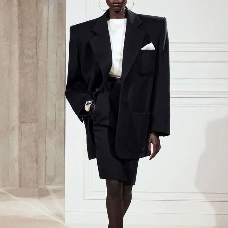SAINT LAURENT FW23 Бизнес-костюм Пальто Женское Черное
