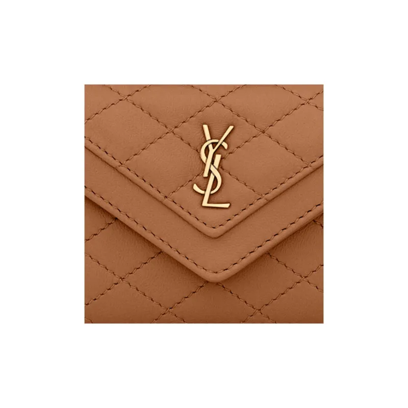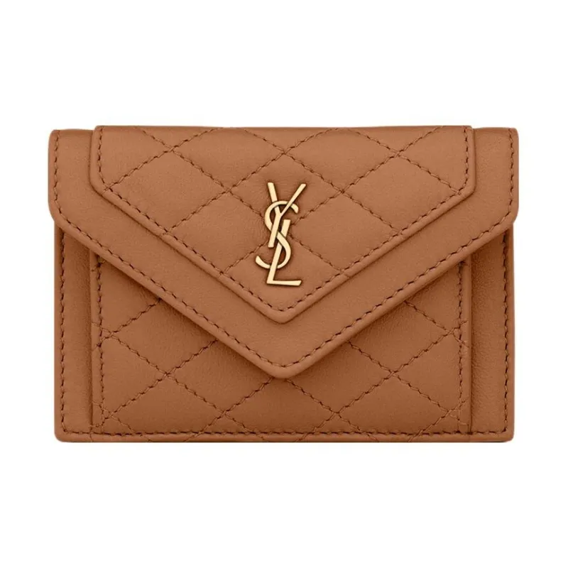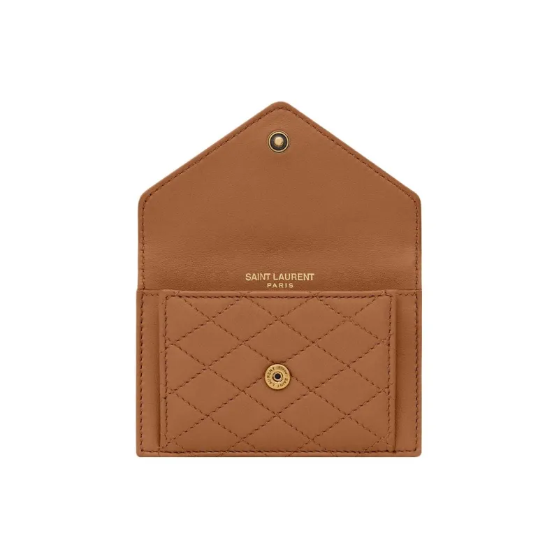 SAINT LAURENT Gaby Lambskin Картхолдер Женский Имбирный Коричневый
