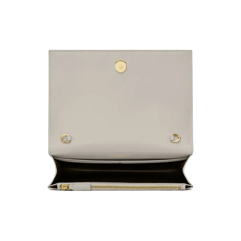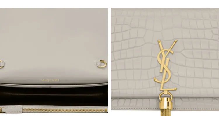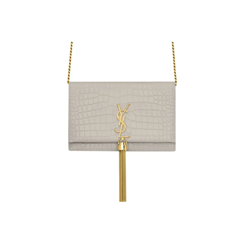 SAINT LAURENT Kate Блестящая кожа бахрома кошелек сумка через плечо сумка женская винтажный белый