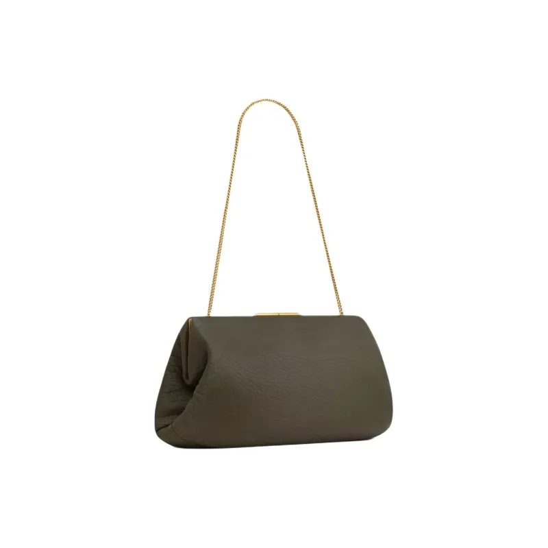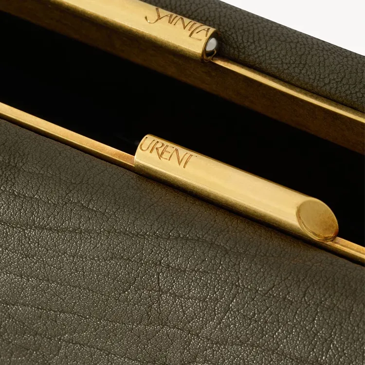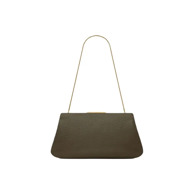 SAINT LAURENT Lambskin Clutch Shoulder Bag Large Women's Musk Light