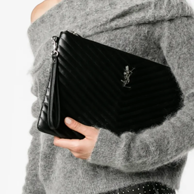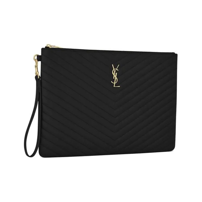SAINT LAURENT Monogramme Телячья кожа Сумка для документов Клатч Стандартный Женский Черный