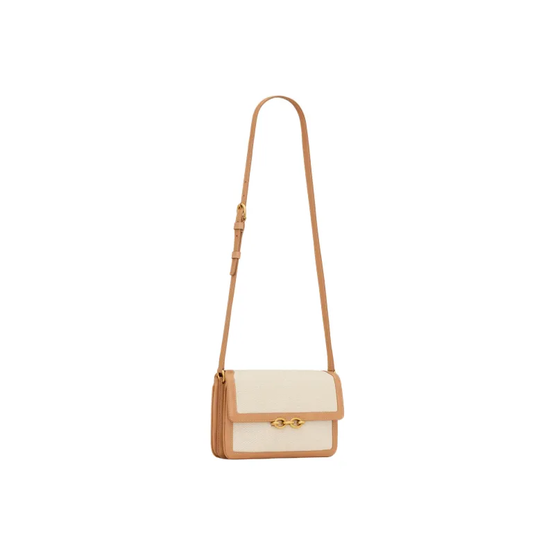SAINT LAURENT LE MAILLON Корова Кожа Хлопок Сумка через плечо Женская Золотисто-коричневая