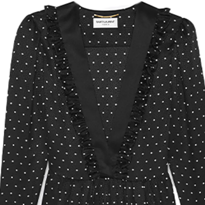SAINT LAURENT Длинное платье с длинными рукавами женское черное