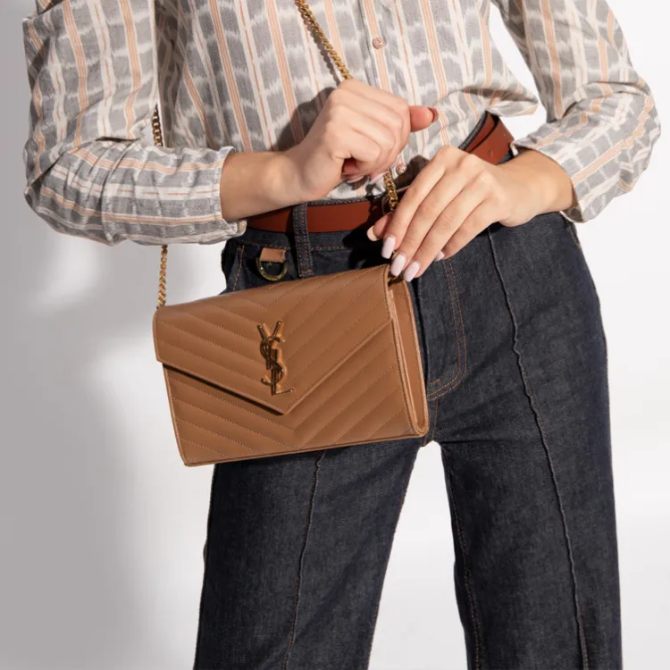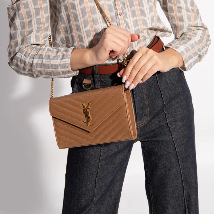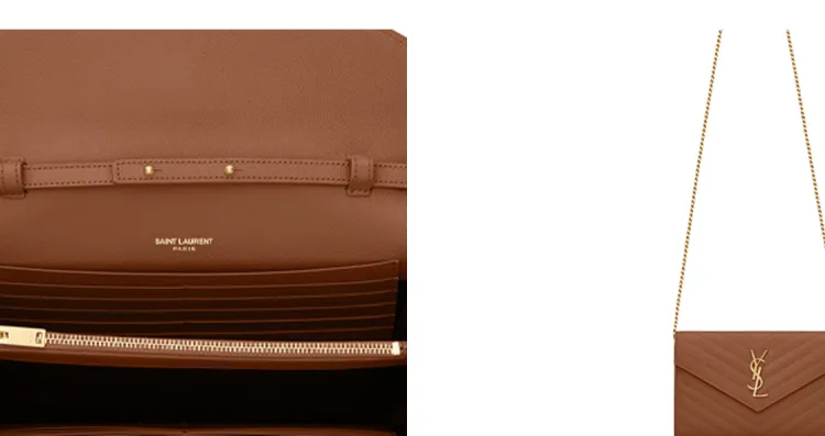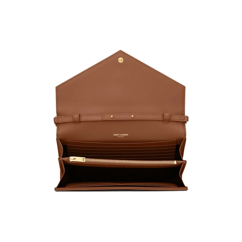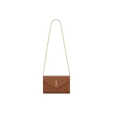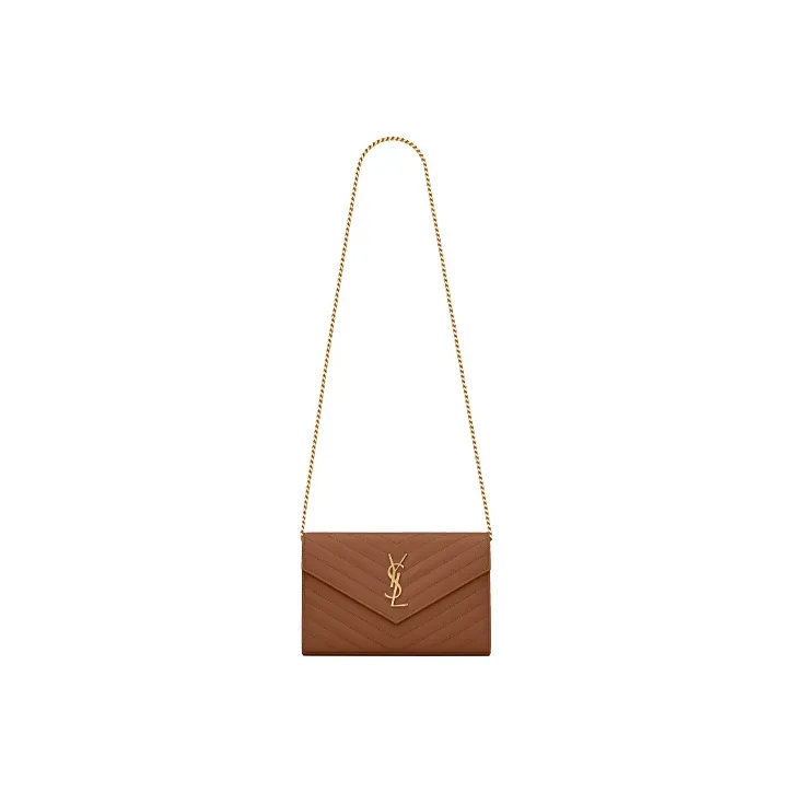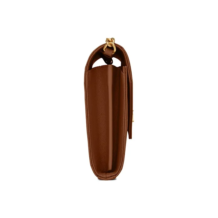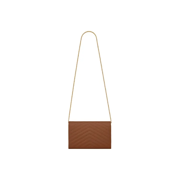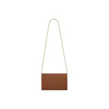 SAINT LAURENT Монограмма Grained Телячья кожа Кошелек Сумка через плечо Женская Темный Естественный цвет Коричневый