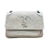 SAINT LAURENT Niki Смесь Твид Пэчворк с Гладкой Кожей Хобо Сумка Портативная Сумка через плечо Сумка на плечо Женская