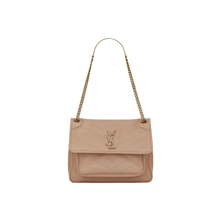 SAINT LAURENT Niki Лоскутное шитье Овечья шкура Хобо Сумка Цепь Сумка через плечо Сумка на плечо Женская Темно-бежевый