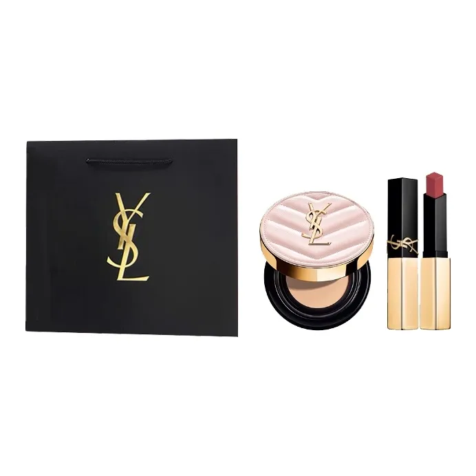 SAINT LAURENT Розовый Cushion Мини Золотой Барная стойка Lipstick Makeup Наборы Длинный Тривальный Цвет лица 12г+2,2г