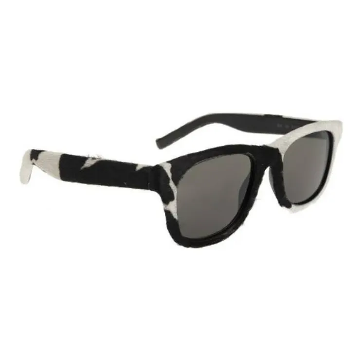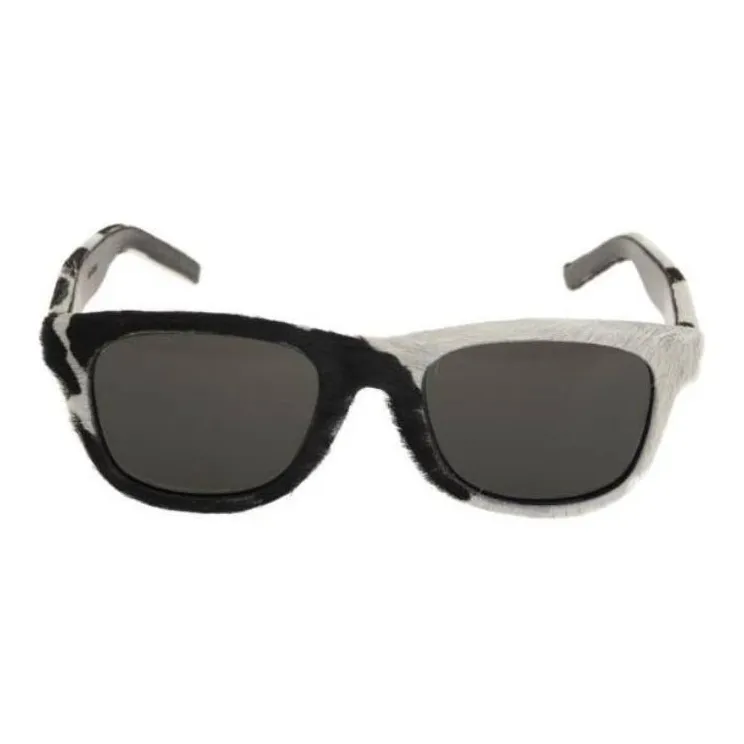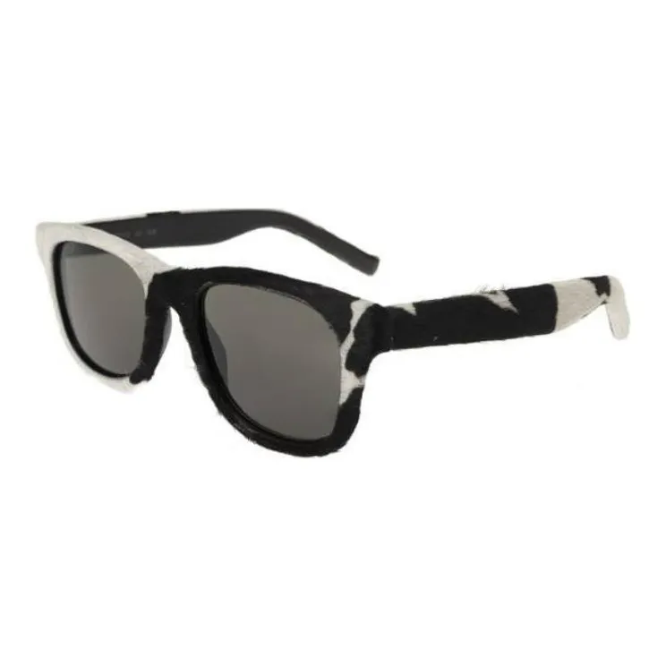 SAINT LAURENT Ацетат Телячья кожа Квадратные Солнцезащитные очки Женские Черный Белый