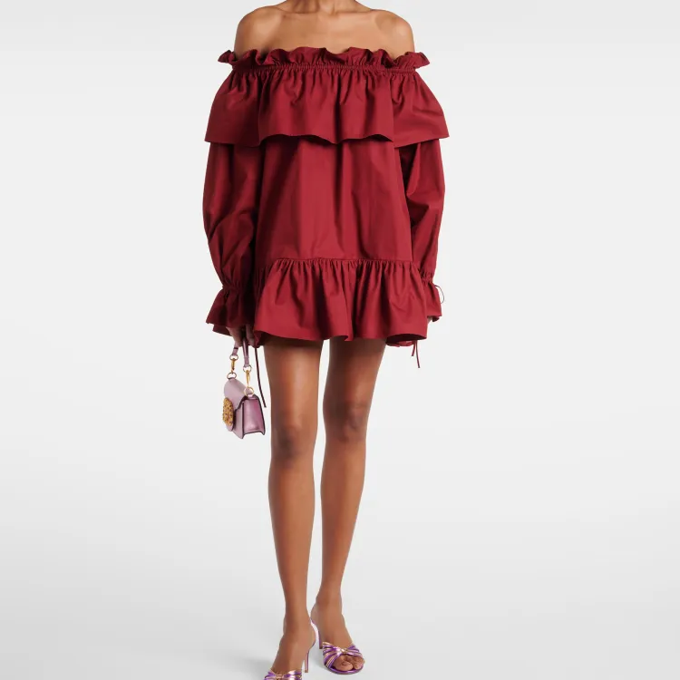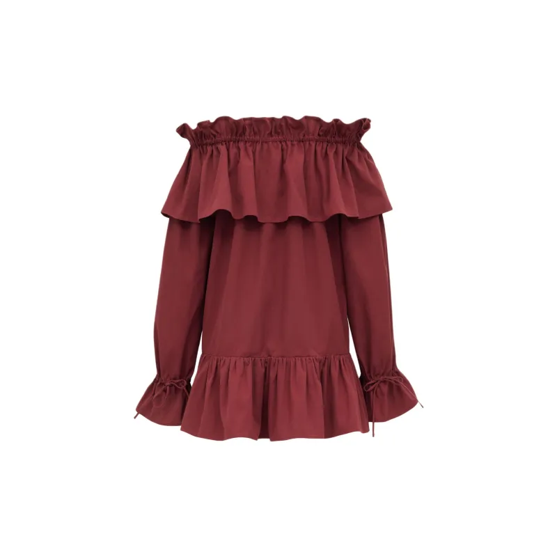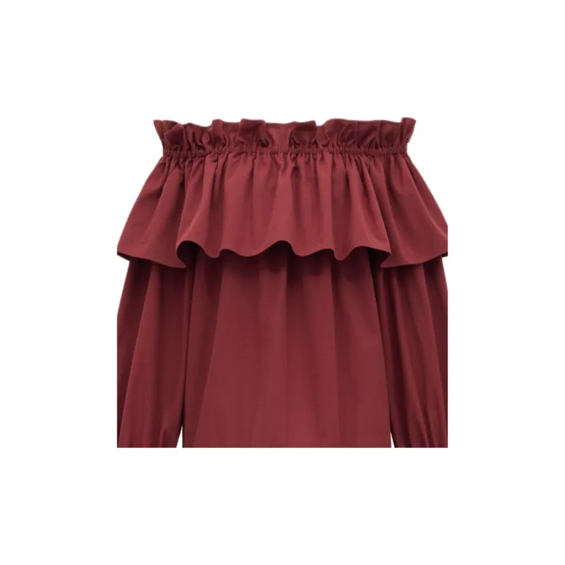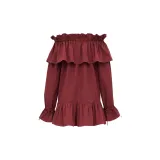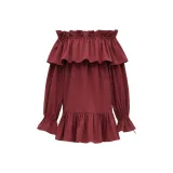 SAINT LAURENT Длинное платье с длинными рукавами женское бордового цвета