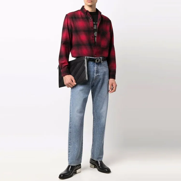 SAINT LAURENT Рубашка Мужская Красная Черная