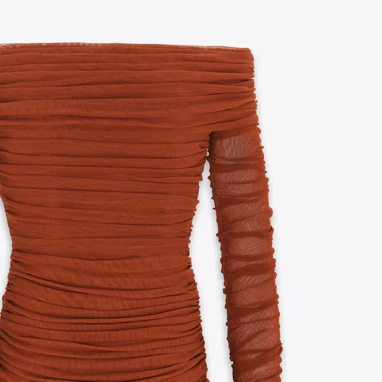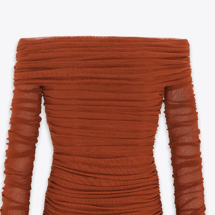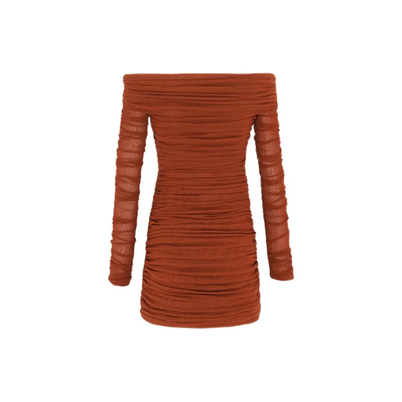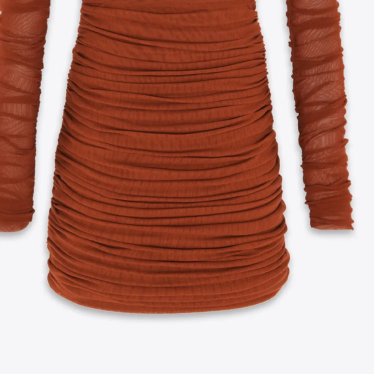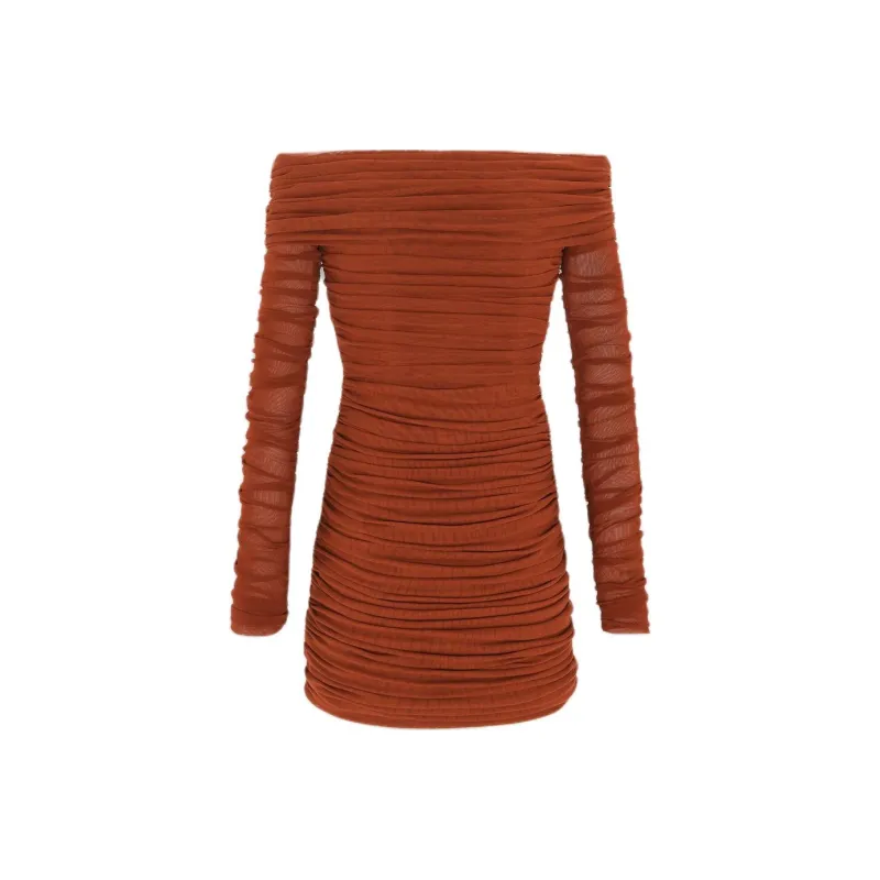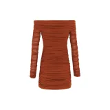 SAINT LAURENT SS24 Длинное платье с длинными рукавами женское темно-красное