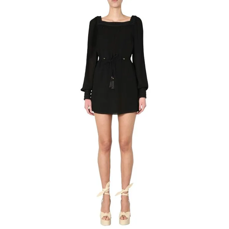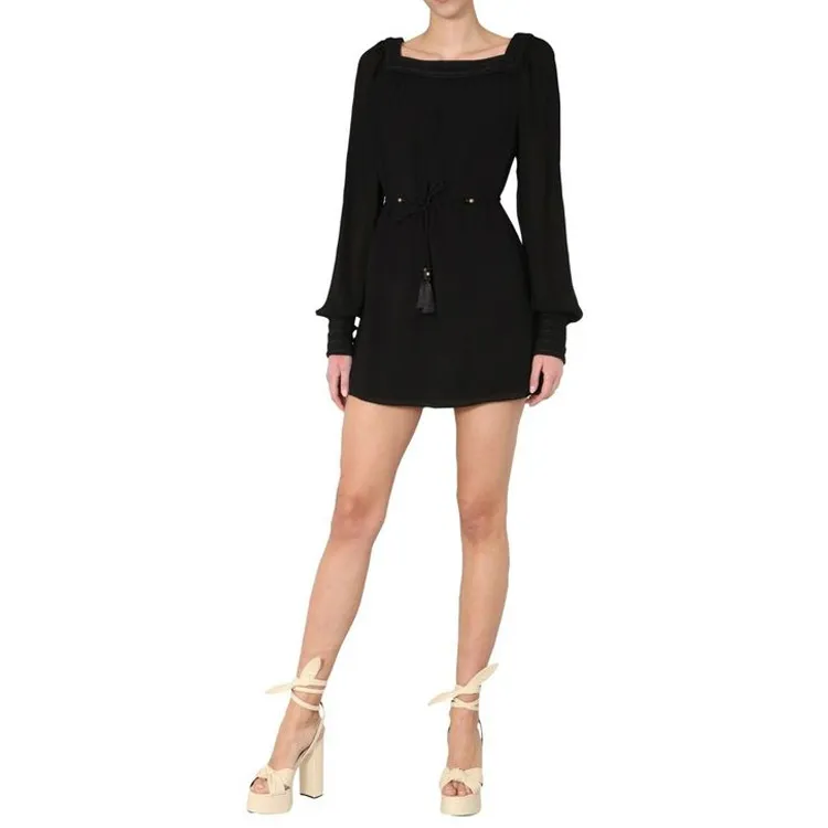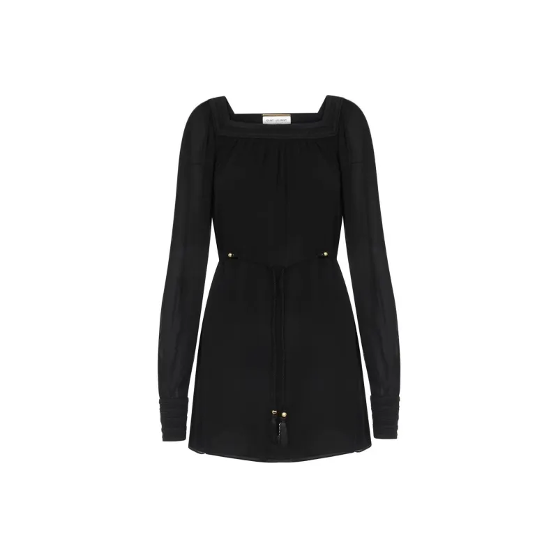SAINT LAURENT Черное Женское Длинное Платье с Рукавами