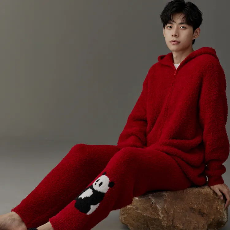Same Language Мужской Китайский Красный GIANT Панда Мужской Пижамный Комплект